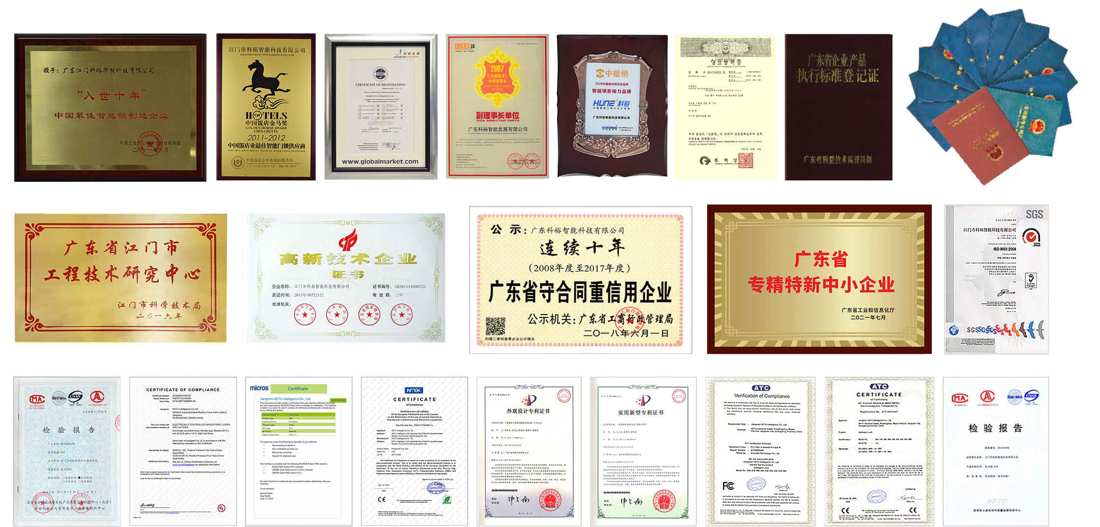 廣東科裕智能科技有限公司是有超過20年智能鎖行業經驗國內較早的大型智能門鎖生產商,是較早一批廣東“專精特新”企業,廣東省高新技術企業,廣東省科技廳授予廣東省多功能智能鎖具工程技術研究中心,生產總部設在廣東省珠江三角洲的中國“第一僑鄉”江門市。公司集產品研發、生產、銷售、維護于一體。企業憑借多年來智能門鎖的發展,累獲多個行業獎項,被廣東省市場監督局連續過10年授予“守合同重信用企業”。科裕品牌是廣東省重點商標保護名錄。